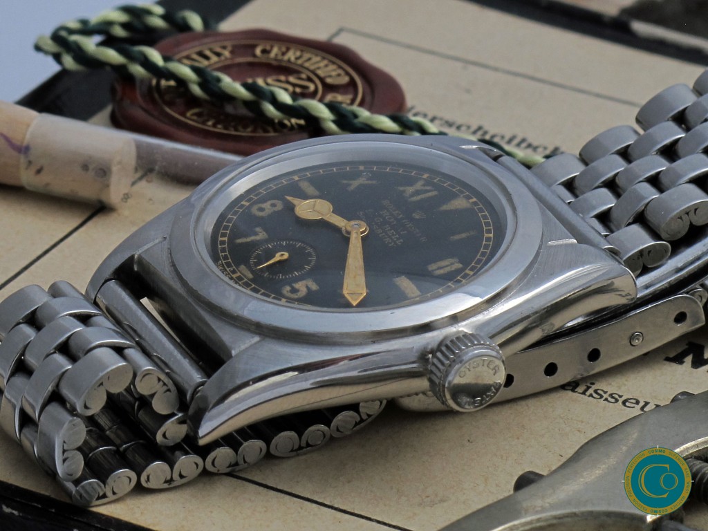A true museum-level Rolex, combining a unique black gilt Error-Proof dial, an extremely rare double signature, and a fully period-correct configuration—a piece unlikely to be seen again.