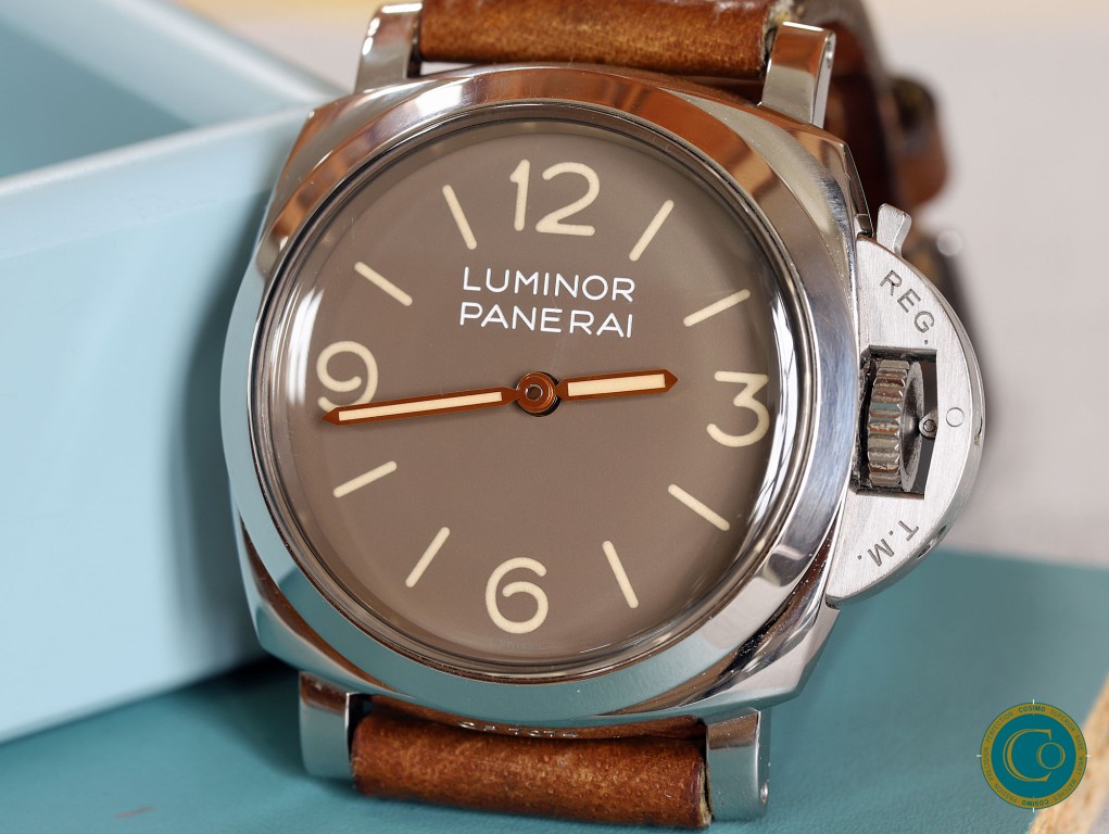 Panerai Luminor PAM00663 from 2020, featuring the iconic 47mm 1950 case with crown guard and brown sandwich dial.