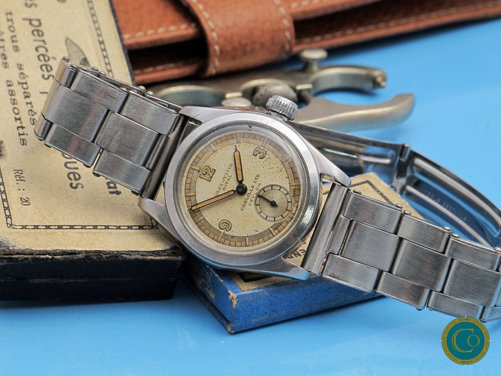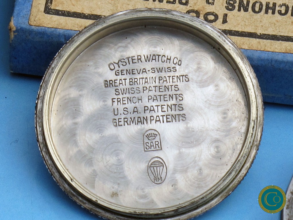 The stainless steel Oyster case remains strong with well-defined lines and a clean screw-down caseback. Inside caseback correctly signed “Oyster Watch Co Geneva”.