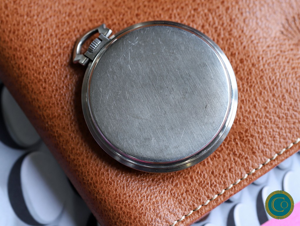 Beautiful steel Movado open face pocket watch from the 1920s.