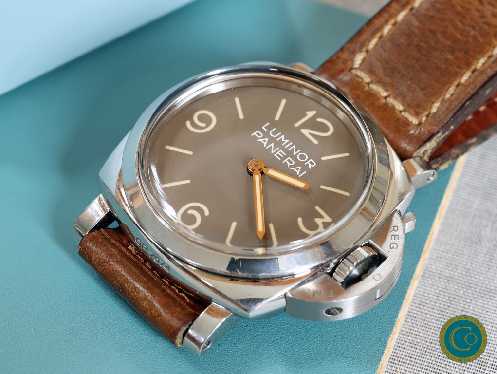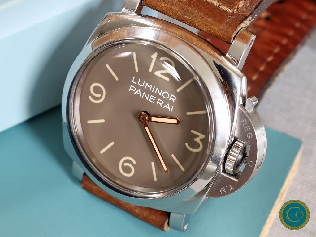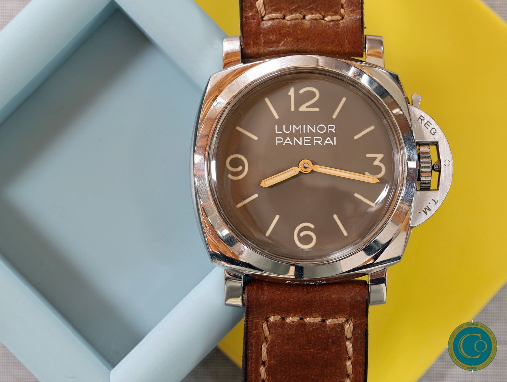 Panerai Luminor PAM00663 from 2020, featuring the iconic 47mm 1950 case with crown guard and brown sandwich dial.