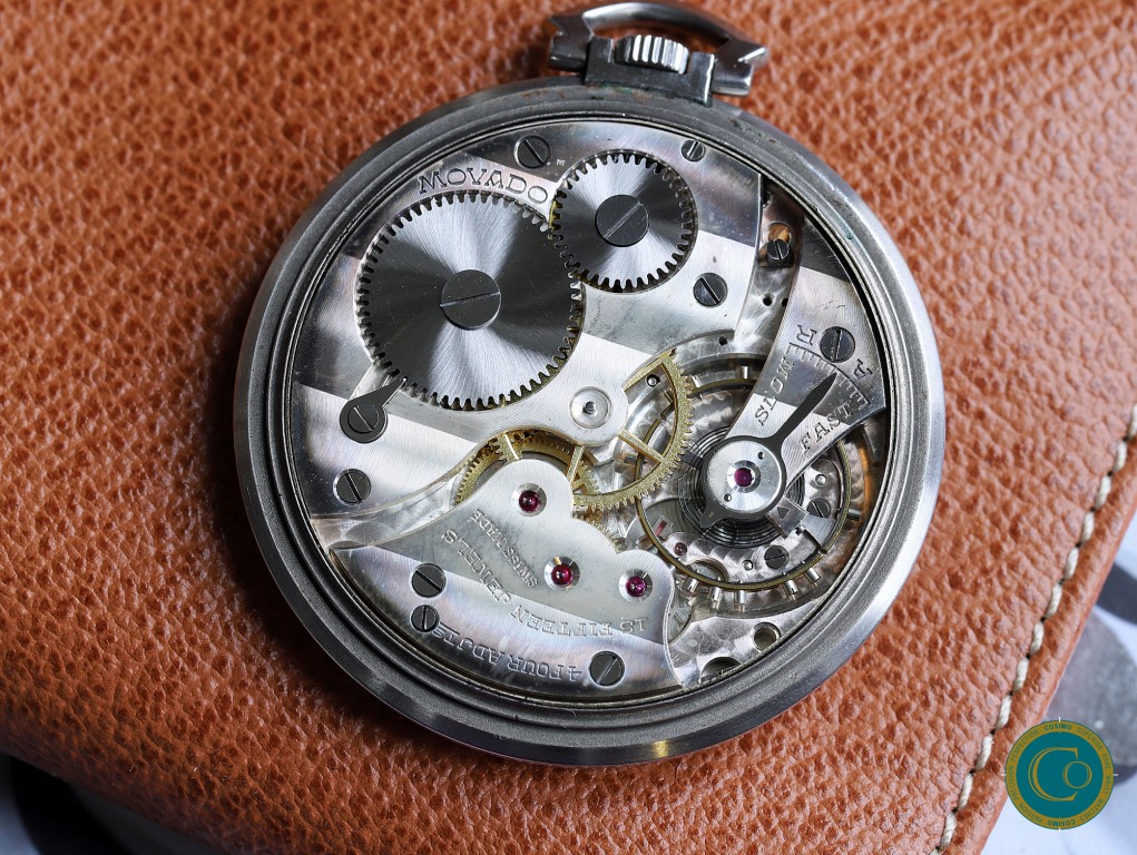 Steel Movado Pocket Watch with beautiful Art Deco style dial from the 1920s